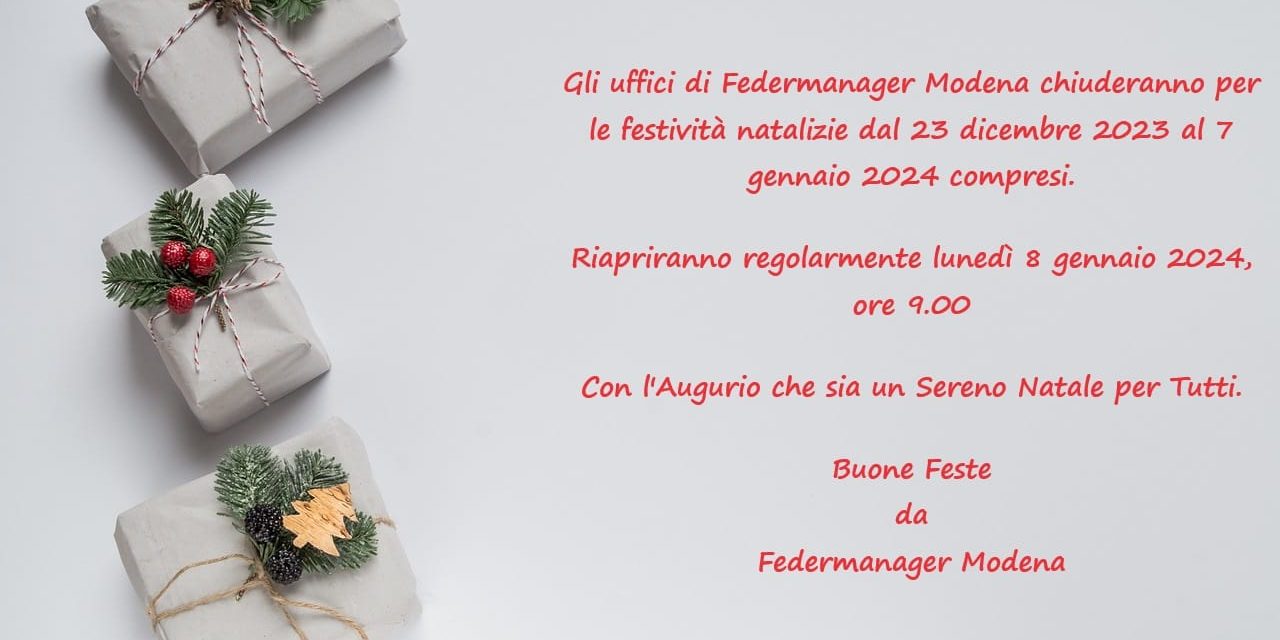 Dic202023Notizie Categoria: NotizieDicembre 20, 2023Naviga tra i postPrecedentePost precedente:Scadenza 3° trimestre Fasi 31.12.2023SuccessivoProssimo post:Webinar: Servizi Assicurativi a favore degli Associati in Servizio, giovedì 18.1.2024, ore 18.00 Notizie collegate Chiusura uffici 25 e 26 aprile 2024 22 Apr 2024 Raccolta Fondi per emergenza alluvione 29 Mag 2023 Open webinar Fondazione Idi: "Codice della crisi di impresa", 12.12.2025 ore 10.00 28 Nov 2025 MARATONA CON I MANAGER CIDA 29 Apr 2020 Rinnovo CCNL Dirigenti Industria 2025-2027: i contenuti dell'accordo 20 Dic 2024 E' online il numero di Gennaio - Febbraio di Progetto Manager 11 Mar 2022