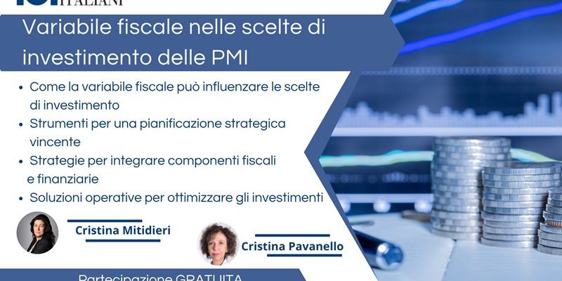 “Variabile fiscale nelle scelte di investimento delle PMI”, è stato posticipato a Venerdì 21 novembre dalle 10:00 alle 12:00 a distanza.